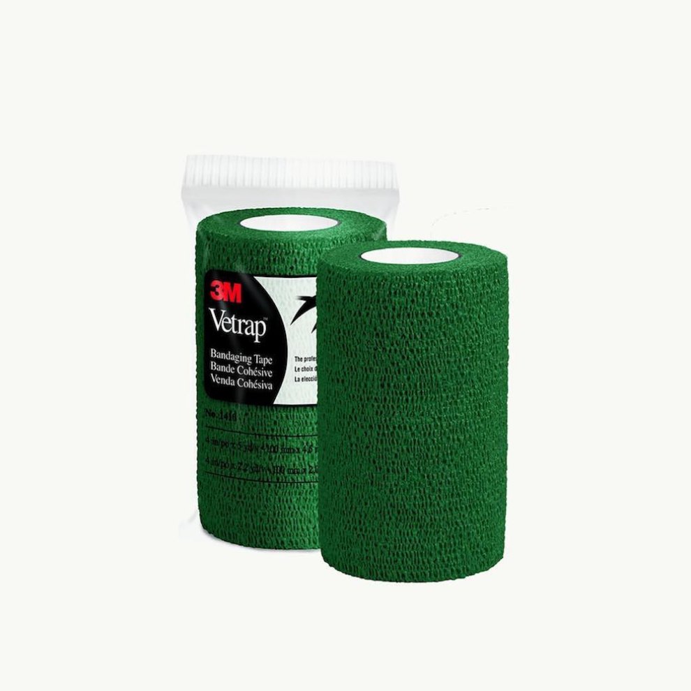 Vetrap from 3M is a market-leader, known for producing very strong and supportive latex-covered bandages. Vet Manufactured from high quality latex, elastic, non-woven cloth and polyester, so these hard-wearing and durable bandages are water repellent and stick only to themselves, not to hair or skin.