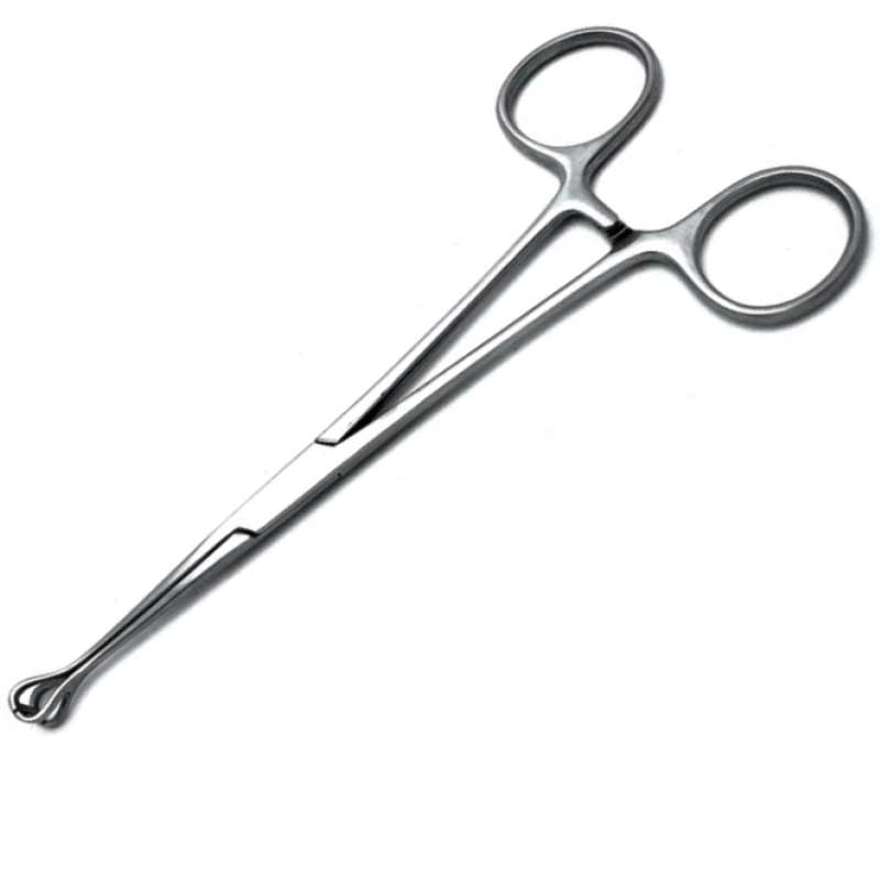 Babcock Tissue Forceps are finger ring, ratcheted, non-perforating forceps used to grasp delicate tissue. They are frequently used with intestinal and laparotomy procedures. Babcock Tissue Forceps are similar to Allis forceps; however, may be considered less traumatic due to their wider, rounded grasping surface. The jaws are circumferential, and the tips are triangular and fenestrated with horizontal serrations. They are particularly useful for grasping tube-shaped structures.