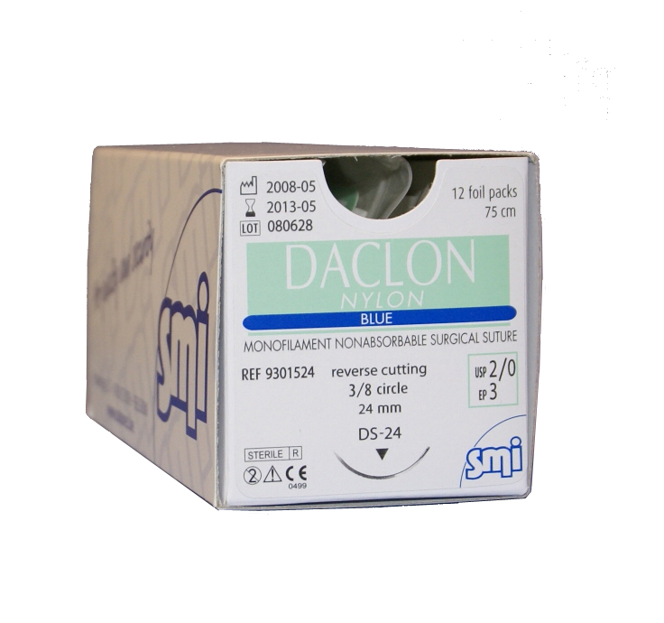 Daclon Nylon Suture Foil Pack are high-quality, non-absorbable surgical sutures manufactured by SMI. Made from polyamide 6 or 6.6, these sutures are extruded as a monofilament and dyed blue to enhance visibility during procedures. Each unit is supplied sterile in a foil pack, ready for use in theatre or clinical settings.