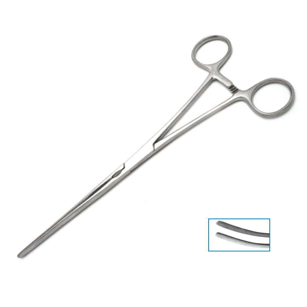 Doyen forceps are a lightweight, non-crushing clamp. Commonly used to grasp large organs such as lungs, or intestines, these have long jaws and shorter shanks. They are available straight or curved, are slightly malleable, and feature longitudinal serrations.