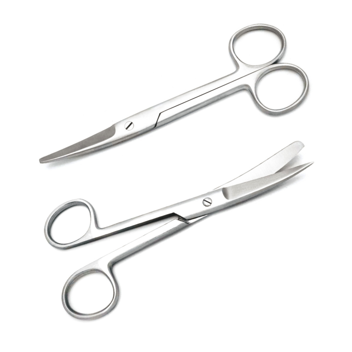 Blunt/sharp has one blunt tipped blade and a sharp tipped blade and so is useful where a sharp point may be needed but retains the blunt tip to offer protection to the surrounding area, i.e. use the blunt tip towards the patient when removing a dressing.