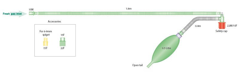 Ayres T-Piece Breathing System With 0.5 Litre Open Tail Bag 1.8m