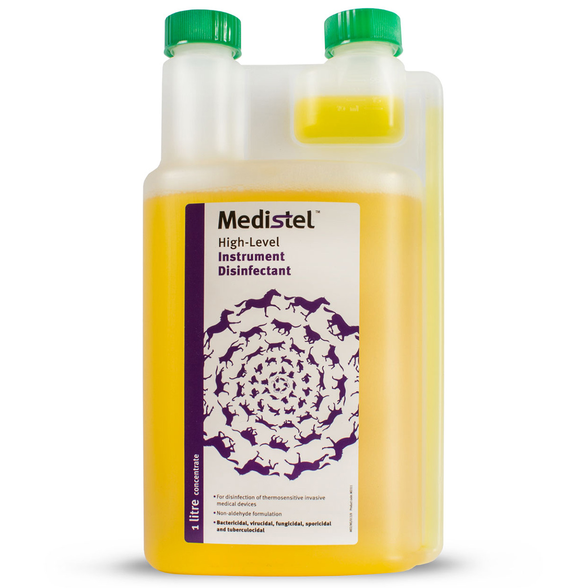 Medistel disinfects and sterilises in 10 minutes and 30 minutes, respectively. At a dilution of 1:20, Medistel is acceptable for high-level disinfection of surgical equipment and thermo-sensitive medical devices.