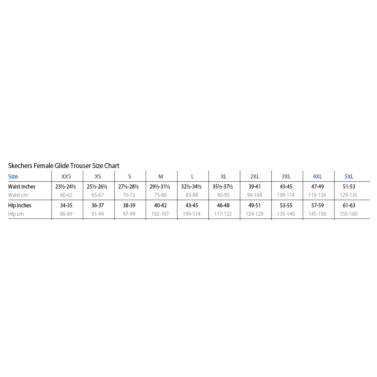 | SKP656P/ROYA/S | Skechers Slip-In Ladies Flare Trouser (SKP656) | Royal Blue | S (35-36") | Small (29.5") | £33.99 |