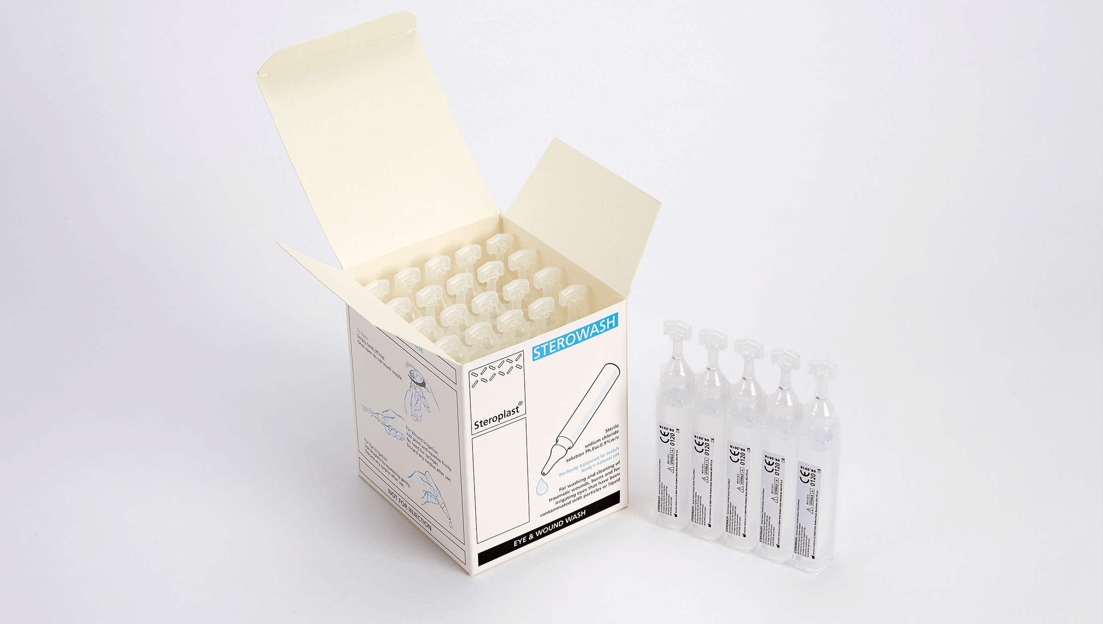 Sterowash Wash Pods are a sterile, pyrogen-free eye and wound wash solution containing Sodium Chloride BP 0.9% in purified water BP. Free from antimicrobial agents and other substances, it provides safe and effective cleansing for eyes and wounds.