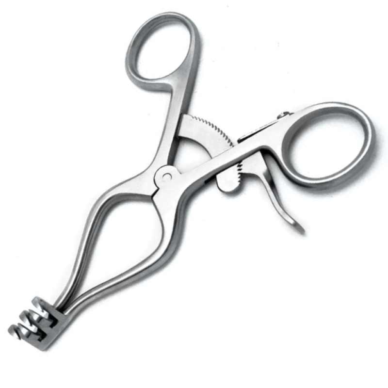 The Weitlaner Retractor is a self-retaining, finger ring retractor with a cam ratchet lock and 3×4 interlocking teeth. A popular instrument, most commonly used in large bones and joint procedures, but also useful with small, deep incisions and soft tissue dissection at a superficial level.